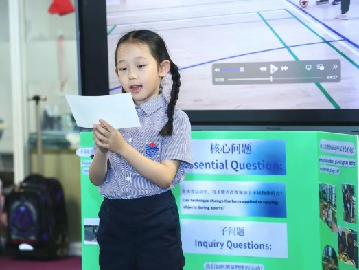 在展示过程中,学生们自信满满,用清晰且富有逻辑的语言,将复杂的科学概念和创新的设计思路娓娓道来,这种在跨学科双语学习中培养出来的综合素质,让我对他们的未来充满了期待。