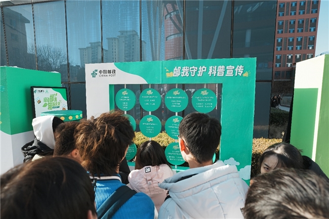 在 “邮我守护”宣传科普区,纷至沓来的捐赠者们在这里参与环保知识问答,内容涵盖绿色邮政、资源循环与生态保护等多个维度。参与者根据答对问题数量计算,可领取对应的奖品。这种“知行合一”的模式备受师生欢迎。“既处理了闲置纸箱,又学到了环保知识,还赢得了奖品,真是一举多得!”一位刚完成挑战的同学兴奋地展示着她的收获。