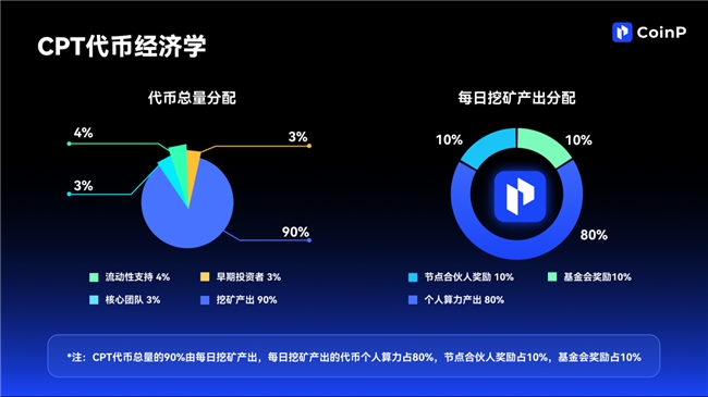 CPT节点是参与币朋CoinP生态算力挖矿的核心载体,持有者可凭借节点对应的算力,每日稳定获取CPT代币收益。本次节点销售绝非单纯的产品发售,更是币朋CoinP搭建下一代Web3金融基础设施的关键进展。